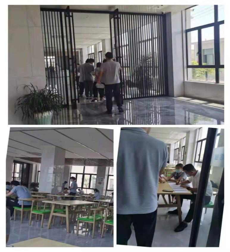 中午公司食堂就餐,安排餐前測溫,就餐期間一人一桌,不交流拉開吃飯的距離減少感染的機會。就餐結束,每位員工的餐盤自行帶回清洗消毒保管。